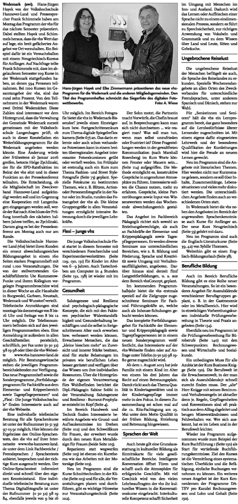 | Volkshochschule verteilt ab heute ihr Semester-Programmheft |